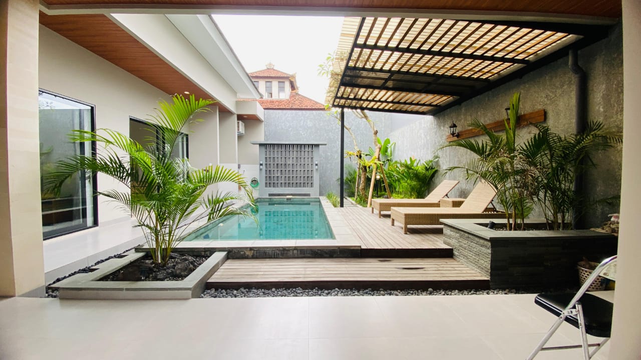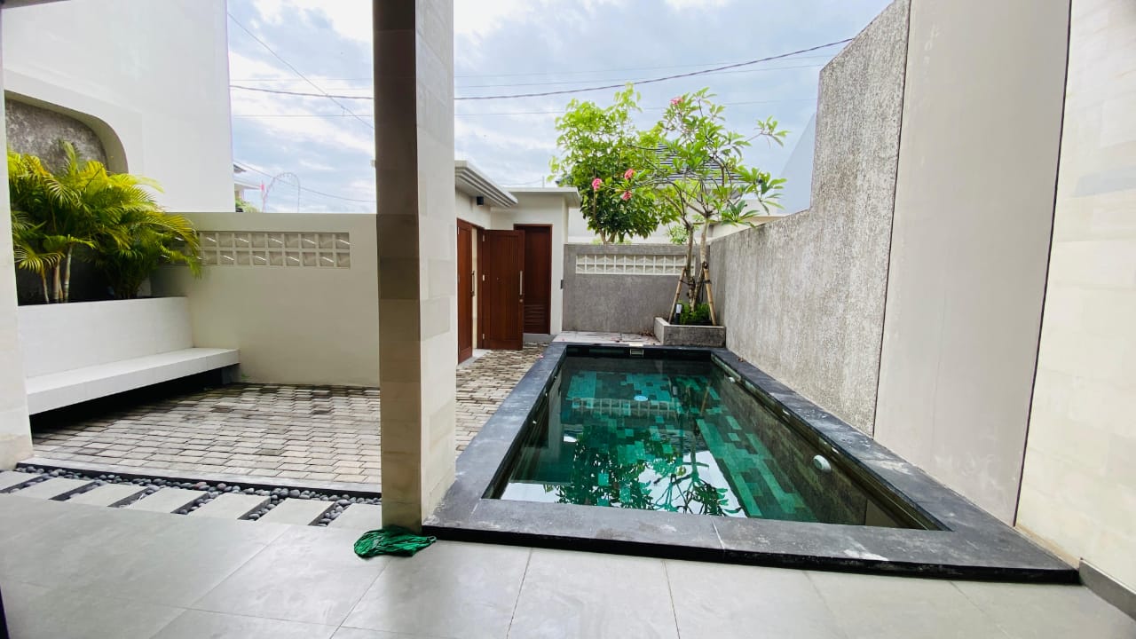 Brand new two-story villa for rent located in Batur Sari, Sanur, Bali. Built on 160m² of land with a building size of 200m², the villa features 2 bedrooms on the upper floor, 3 bathrooms, and a small storage room. It comes with 5500-watt electricity and a deep well water supply. Situated in the strategic and comfortable area of Sanur, this property is ideal for long-term living.
